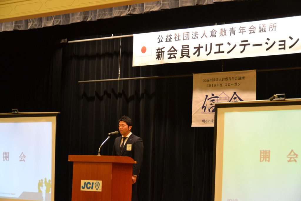倉敷市民会館にて、2018年度後期入会新会員オリエンテーションが開催されました。三木理事長より、新会員に向けて入会歓迎の言葉を伝えると共に、青年会議所の目標や三信条を基礎に展開する運動の意味について熱く語られました。 その後、講師にお招きした野上仙一郎先輩の講演では『可能性』〜JC活動が拓く無限の可能性について〜という演題で、今後どのようなビジョンを持ってJC活動をしていくのが良いかといったことをお話いただきました。 この講演を聞いたことで、新たに迎えた6名のメンバーだけでなく、現役会員も初心を振り返ることが出来、JCへの思いを深める機会となりました。 野上先輩、ありがとうございました。 新会員の皆様、お疲れ様でした。