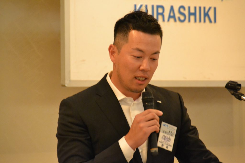 講演部分では、講師に松下知寛氏(ハレノミーノくらしき 実行委員長・一般社団法人日本バーテンダー協会倉敷支部 支部長)と大野文彦先輩にお越し頂き、自身のまちおこしのとりくみや、他団体との違い青年会議所としての特色や強みについてご講演頂きました。講演後半ではチームに分かれてグループディスカッションを行い、それぞれがまちづくり事業を考えその後、各事業の発表がありました。