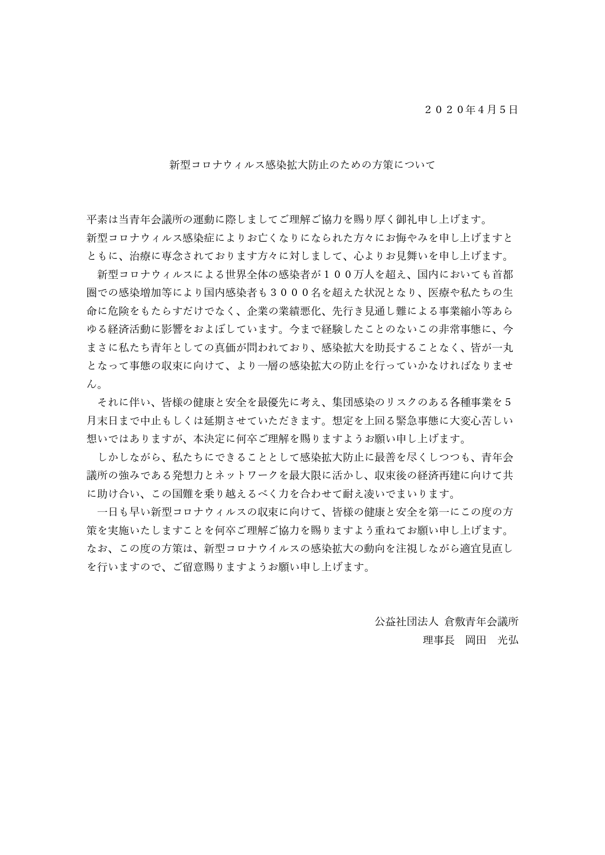 新型コロナウィルス感染拡大防止のための方策について